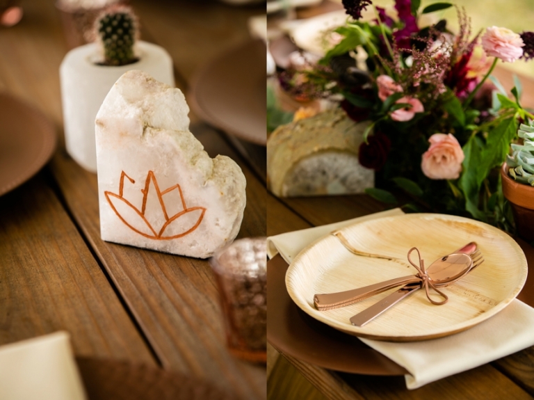 Favors: homemade by bride and groom using leather and copper hardware from etsy. Copper tags from www.traptags.com