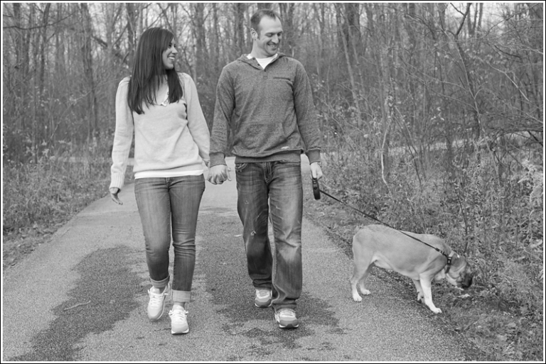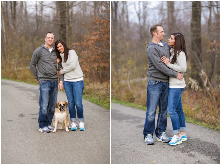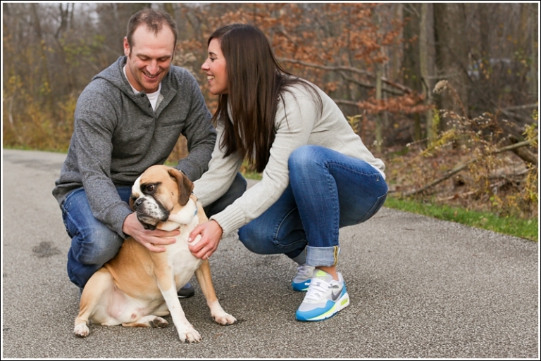 Back in February Jayson and I did our very first bridal show. I was so nervous about it but we ended up booking a few pretty incredible brides that day! We ended up giving a free engagement session in a drawing and Julie happened to be the winner! How lucky were we that I got to spend a beautiful October day shooting a sweet and beautiful couple! I think I won in the long run! And not only did they pick some beautiful scenery for their pictures… but they also brought their dog, SULLY! Whenever couples say they want to bring their puppy along for some pictures, my only request is they don’t judge me when I make a complete fool of myself for loving on their dogs too much… Sully was no exception!