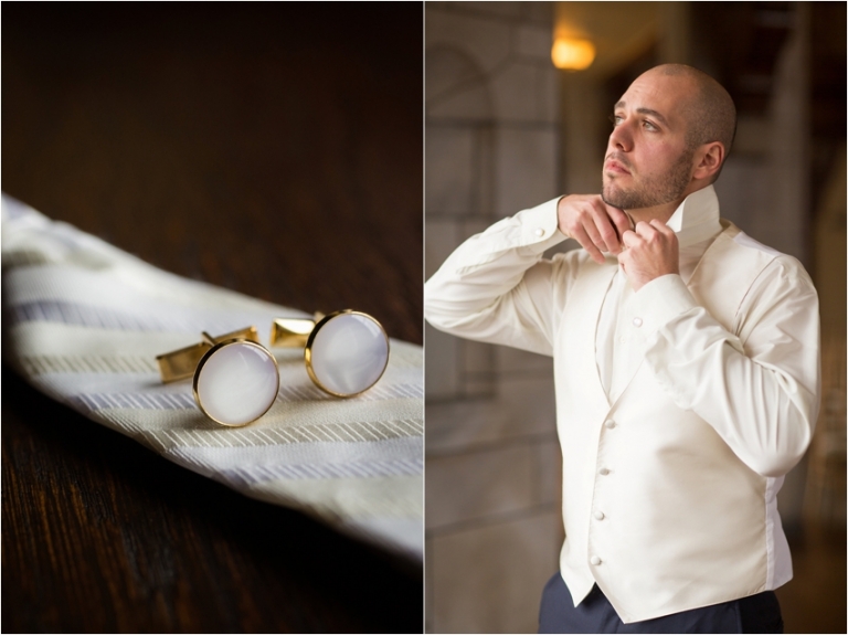 Groomsmen and Groom attire: Men’s Warehouse – Navy suits with ivory suits and wine ties. Groom will be in an ivory tie.
