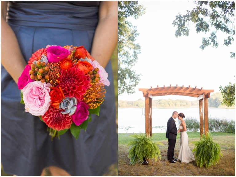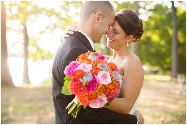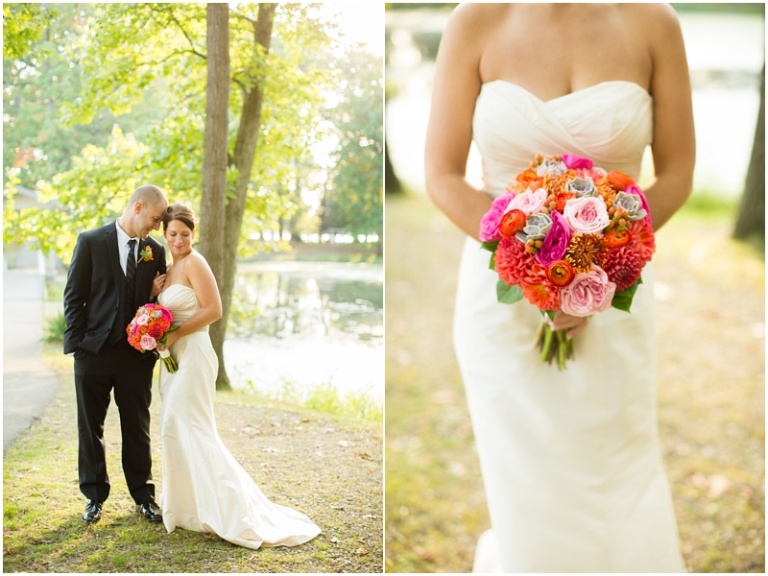 What a beautiful bride!!! I love their flowers, and their reception setup! Their portraits by the lake are so lovely – no wonder they were featured on The Knot!!